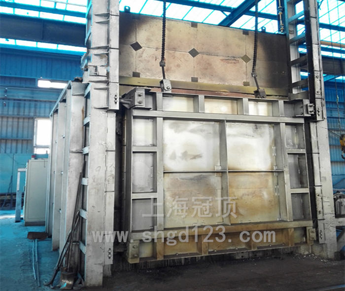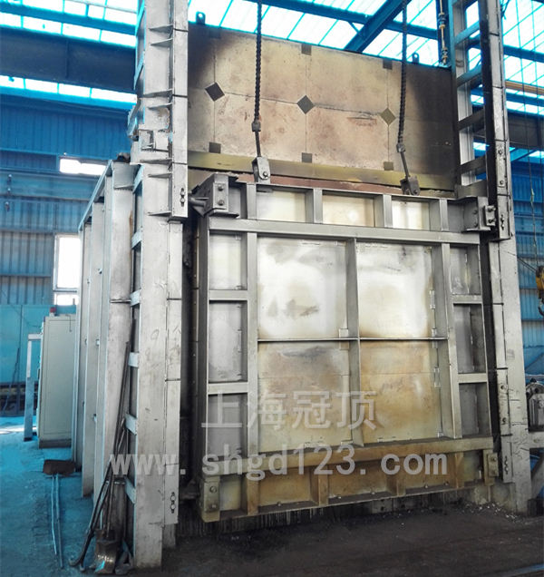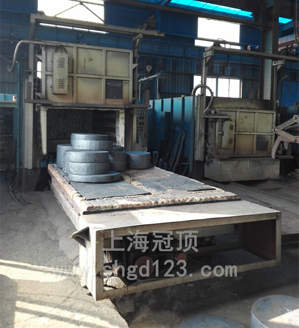 臺(tái)車采用重載結(jié)構(gòu),密封槽為自動(dòng)提升式沙封機(jī)構(gòu)減少臺(tái)車爐的熱損失,臺(tái)車由大功率動(dòng)力系統(tǒng)帶動(dòng)。臺(tái)車上安裝有鉻錳氮耐熱鋼爐底板或1200℃碳化硅爐底板承載工件。